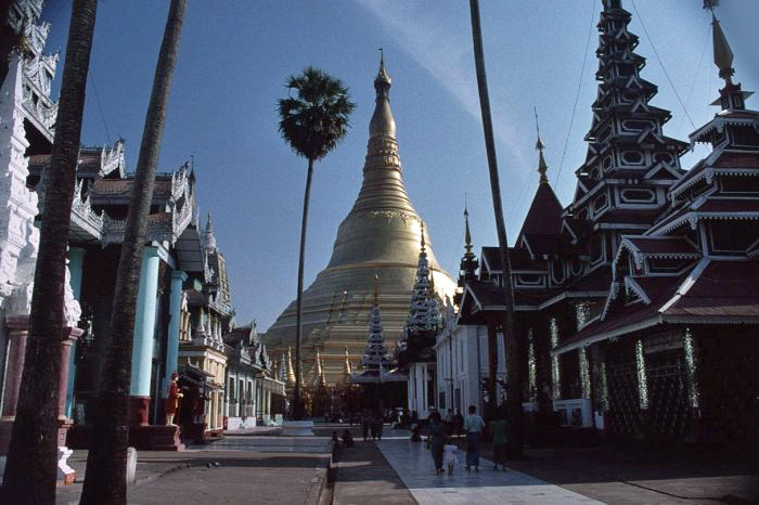 Toen ik van 13 februari tot en met 2 maart 1996 in Birma – officieel: Myanmar – verbleef, was het land net opengesteld voor serieus toerisme. Voor mij was dat een goede reden om het land boven aan mijn lijst te zetten. De ervaring leert tenslotte, dat massatoerisme een kwestie van korte tijd is. En dan duurt het niet lang meer voordat een groot deel van de authenticiteit verloren gaat. Omdat het in die tijd moeilijk reizen was door Birma besloot ik een georganiseerde reis te boeken, waarbij wel een grote mate van vrijheid overblijft. Al bladerend door reisgidsen (aan internet had je toen nog weinig) kwam ik tot de conclusie dat VNC de beste aanbieding had. Een rondreis van drie weken, waarbij alleen vervoer en accommodatie geregeld wordt en waarbij met kleine groepen gereisd wordt. Het visum moest ik zelf regelen en dat betekende dat ik mijn paspoort naar Duitsland moest opsturen. Niet iets om kort van tevoren te doen, maar het ging allemaal goed. Om te acclimatiseren en omdat ik nog nooit in Thailand geweest was, besloot ik een week eerder te vertrekken. Zo kon ik nog een week Bangkok en omgeving verkennen. De laatste dag maakte ik kennis met de zeven medereizigers en de reisleidster. Zo vlogen we naar Yangon, waar het Birmese avontuur begon met een bezoek aan de schitterende Shwedagon Pagode, die gerust het Vaticaan van het Boeddhisme genoemd mag worden.
