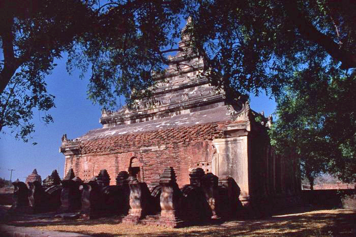 Al om half zes is er ontbijt in ons motel. Goede service. Schuin tegenover het complex is een fietsenverhuurder. We gaan direct op pad. Rob en ik fietsen gelijk op naar een van de mooiste tempels om vanaf het dak de zon te zien opkomen. Het is een behoorlijk eind fietsen, maar de geasfalteerde weg van Nyaung Ou naar Bagan is niet slecht. De schemering is intussen al begonnen, dus hebben we nog maar heel weinig tijd om de tempel te bereiken. Toch zijn we er net op tijd. Helaas zijn we niet de enigen. Er staat zelfs een bus voor de poort. Ik had niet gedacht dat er zoveel toeristen zouden zijn in Pagan. Het blijkt dat er ook veel bezoekers uit Birma zelf zijn. Voor hen is de oude tempelstad ook een leuk uitje.