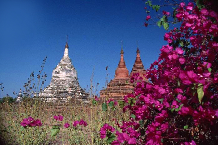 De Ananda-tempel is zo ongeveer de best gerestaureerde tempel van Pagan. De meeste andere tempels hebben alleen wat bewapening gekregen tegen verder instorten. Ook buiten ziet het er mooi uit. De pagode op het hoogste terras blinkt van het goud en in de tuin rondom staat het vol helder gekleurde bougainville.